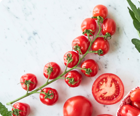 Cherrytomat på stilk er en udsøgt tomat med en flot rød farve og en karakteristisk, kraftig og krydret smag. Dens unikke jordbærform gør den til et hit hos forbrugerne.